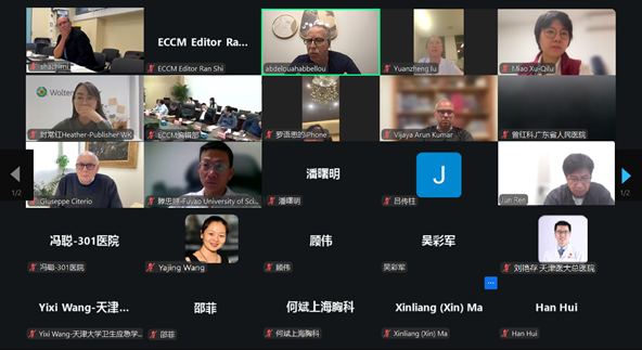 The meeting was attended by 42 editorial board members and young editorial board members from five countries, including Professor Chen Yuguo, Editor-in-Chief of ECCM and President of Qilu Hospital of Shandong University; Co-Editors-in-Chief Professor Abdelouahab Bellou of Wayne State University, USA, and Professor Giuseppe Citerio of the University of Milano-Bicocca, Italy; Associate Editors Professor Ma Xinliang of Thomas Jefferson University, USA, Professor Lü Chuanzhu of Sichuan Academy of Medical Sciences & Sichuan Provincial People’s Hospital, and Professor Ren Jun of Zhongshan Hospital, Fudan University; Editorial Board Members Professor Xu Feng of Qilu Hospital of Shandong University, Professor Pan Shuming of Putuo District Central Hospital affiliated with Shanghai University of Traditional Chinese Medicine, Professor Zeng Hongke of Guangdong Academy of Medical Sciences & Guangdong Provincial People’s Hospital, Professor Shao Fei of Beijing Chaoyang Hospital, Capital Medical University, Professor Teng Zhongzhao of Fuyao University of Science and Technology, Professor Wang Yajing of the University of Alabama at Birmingham, USA, and Professor Said Hachimi-Idrissi of Ghent University Hospital, Belgium, among others.